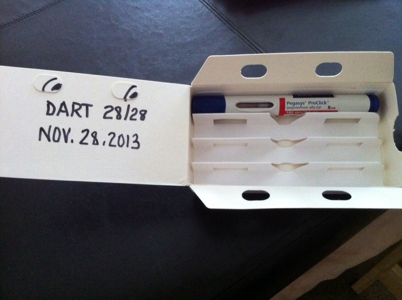 I want to share a photo with you. I thought it might prove to you that the "Last" injection actually exists! Here's a photo of what I thought would never come, my last dart! I recorded it for its historical value, lol!