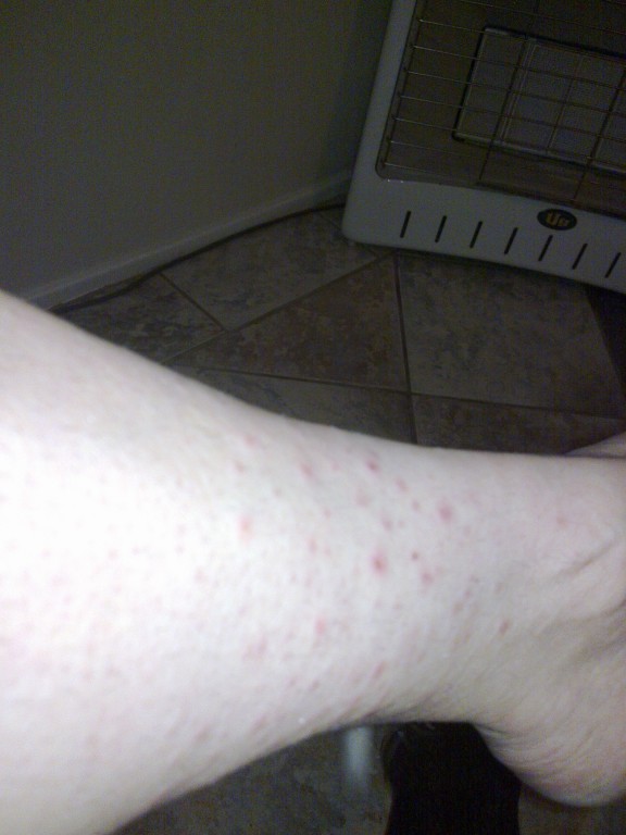 Iv decided it may be Ribavirin rash, although Telaprevir causes nasty ones too. Running around working and moving boxes from garage to house put me in the sun (105 temp outside) a lot. I'm almost unpacked n wanted to see what a day of staying cool will do to rash. My air conditioner cranked up at night helps too.