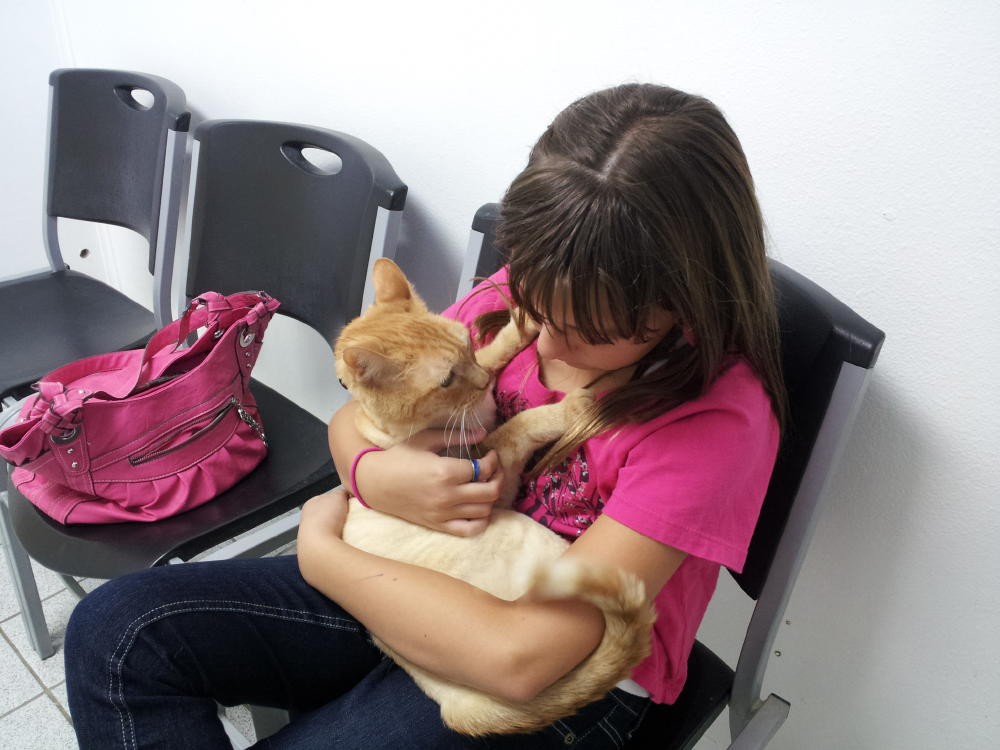 I've attached 3 pics here. The first one is of Calvin saying goodbye to Bri at the Vet. We stayed with him, talking to him and petting him the entire time, through the muscle relaxer and then the shot in the vein to stop his heart. The last 2 pics are after he passed. Bri wanted to hold him one more time. It was SO hard. Calvin died all wet, from our tears on him. (15 mins between relaxer and final shot).