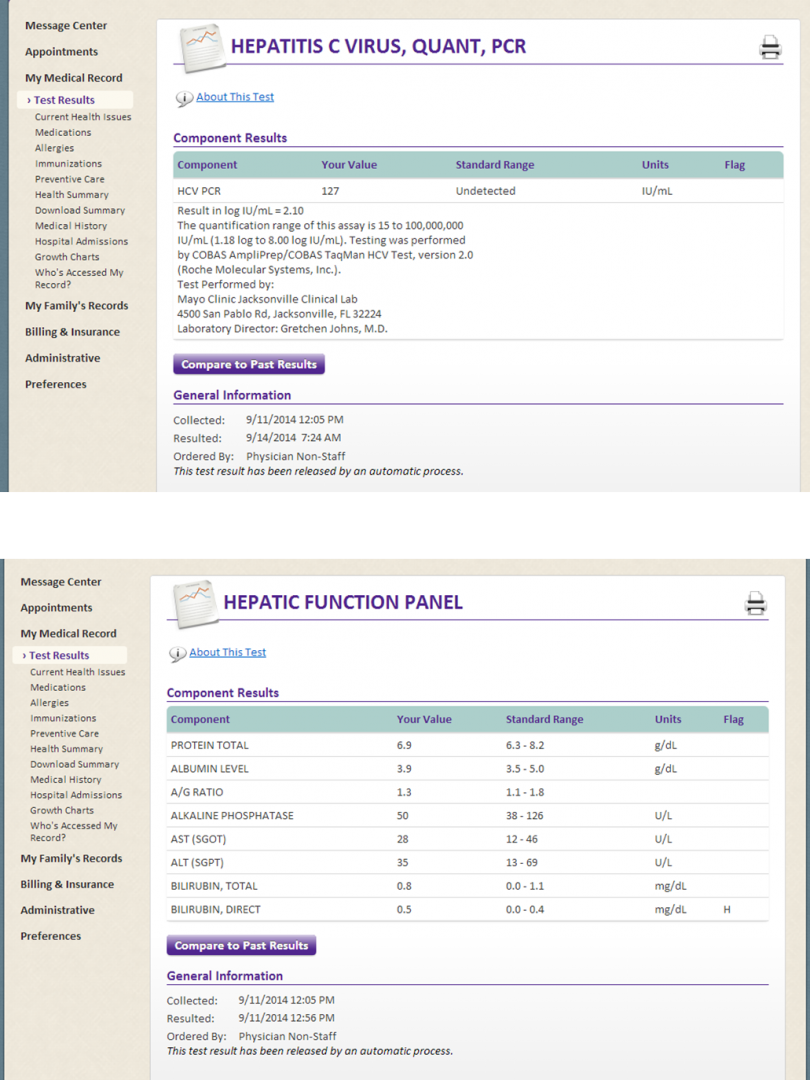By trade, I'm a computer programmer and I also teach computer programming. One of the first things that a programming student learns is that the output for the program will be no more accurate than the data that is input into it--hence the phrase: Garbage in, Garbage out. Well a few days a go I got a call from my doctor's RN and she told me I was undetected (Garbage in) and then I posted the results to this forum (Garbage out). Since then however, I received my results via the Epic electronic record system and my viral load was 127. While this is good for only 6 days, it is not undetected. I'm going to upload a screenshot of the quantitative VL results and my liver panel results. Thanks in advance for your comments.