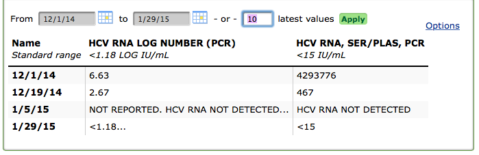 "A result of "<15 IU/mL (<1.18 log IU/mL)" indicates that HCV RNA is detected, but the HCV RNA level present cannot be quantified accurately below this lower limit of quantification of this assay. When clinically indicated, follow-up testing with this assay is recommended in 1 to 2 months."
