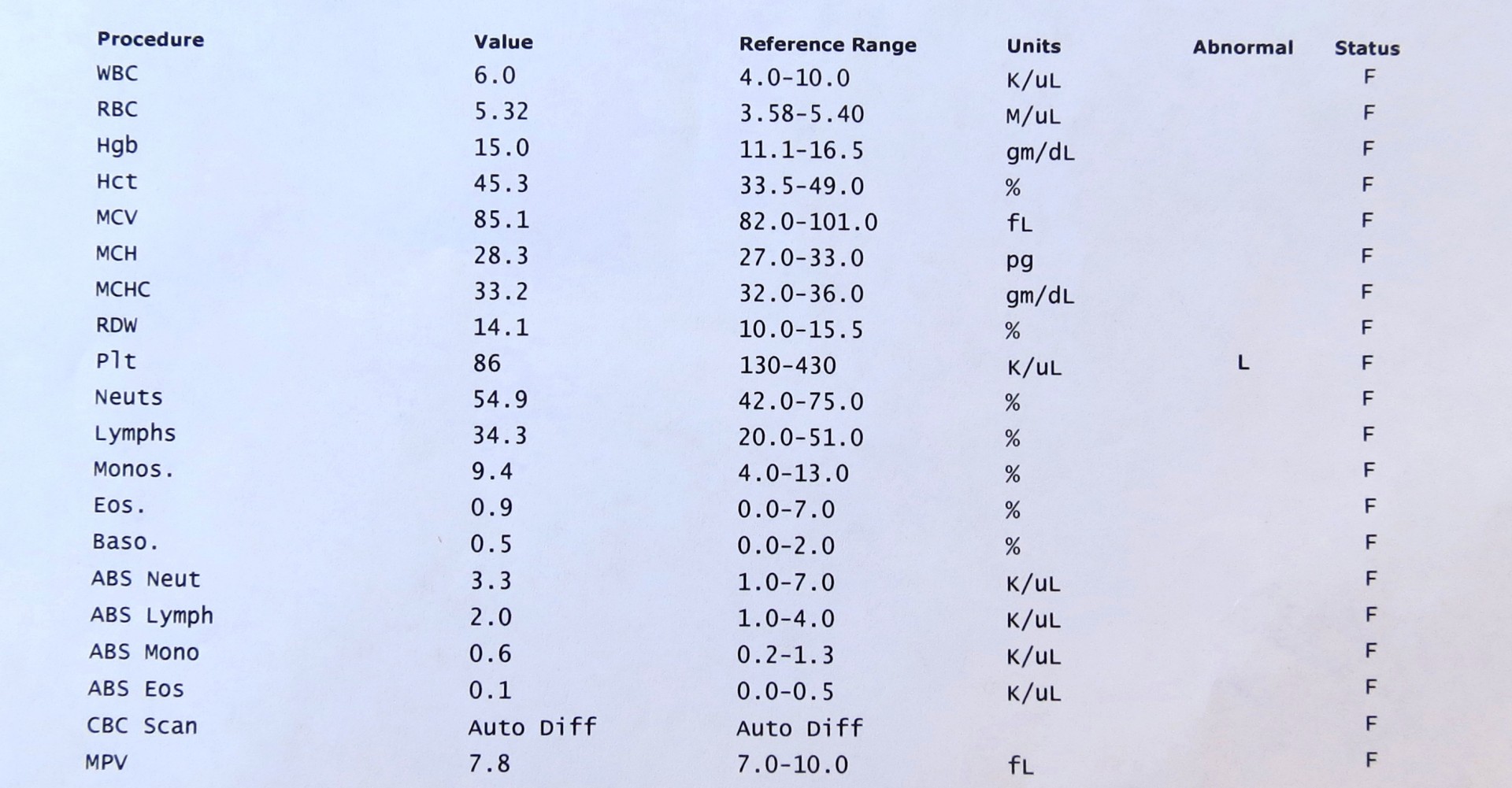 2nd Blood Test (CBC) since starting Harvoni now with 18 days to go end of tx