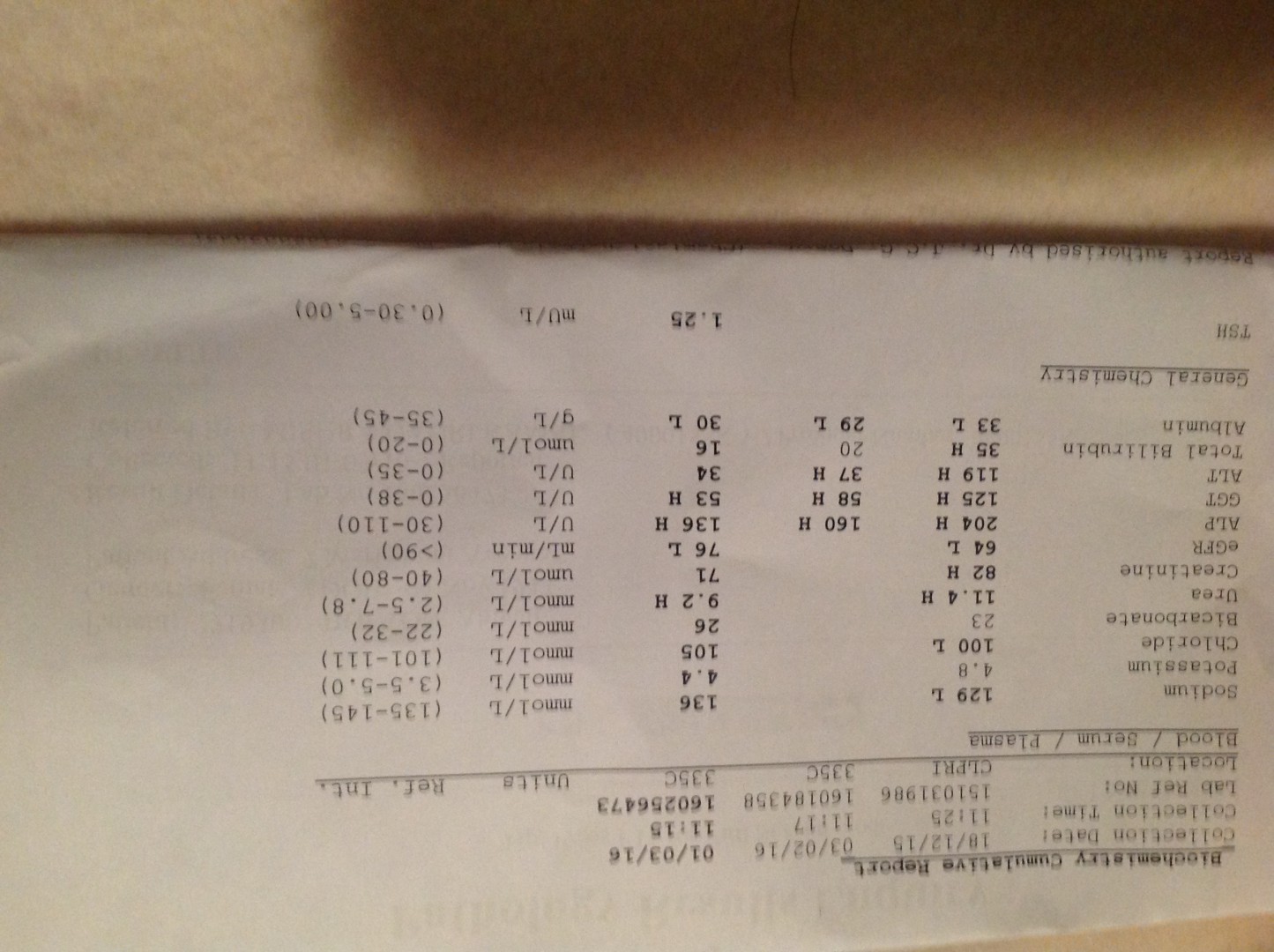 Hi everyone. Just posting up the bloods I had done on 3/01/16 and the catscan(?) I had done last November justweeksbefore treatment. I have neverreally understood what it said.